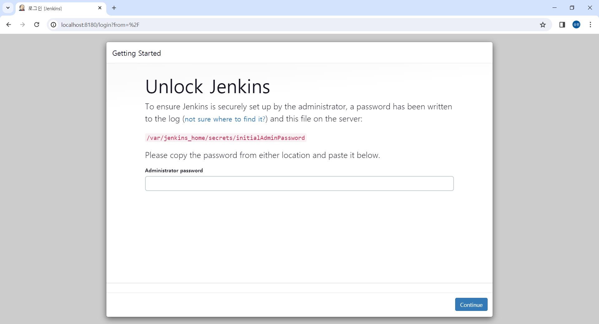 - 명령어를 실행해 administrator password 확인하여 로그인